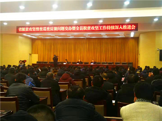 1月3日,扶溝縣召開省脫貧攻堅督查巡查問題交辦暨全縣脫貧攻堅工作推進(jìn)會??h委副書記、縣政法委書記詹凱主持會議??h委常委、縣政府黨組成員段然,縣委常委、副縣長趙紅亮出席會議??h直各單位一把手、相關(guān)行業(yè)部門分管扶貧工作的副職,各鄉(xiāng)鎮(zhèn)(街道)黨(工)委書記、分管扶貧工作的副職、扶貧辦主任,81個貧困村的黨支部書記、駐村第一書記參加會議。