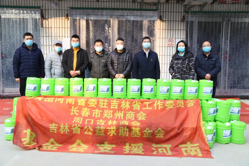 為緩解全區(qū)醫(yī)用物資緊缺的情況,吉林省公益求助基金會(huì)和周口吉林商會(huì)的代表柳崗一行人千里馳援,于2月3日上午向淮陽(yáng)區(qū)捐贈(zèng)可稀釋后使用的消毒液濃縮液100桶,總計(jì)1噸,用于疫情防控。