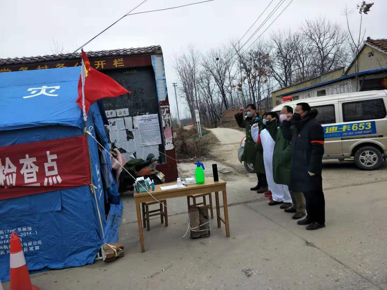 “我莊嚴(yán)宣誓,為維護(hù)人民群眾身體健康及生命安全,全力做好新型冠狀病毒感染的肺炎疫情防控工作,誓死捍衛(wèi)新時(shí)代黨員干部的使命與擔(dān)當(dāng)。”這是付集鎮(zhèn)黨委副書記曹懷永帶領(lǐng)張埝卡點(diǎn)宣誓的場(chǎng)景。2月5日,這段感人而又讓人充滿信心的宣誓聲,在付集大地相繼響起,張埝卡點(diǎn)一線臨時(shí)黨支部正式成立。