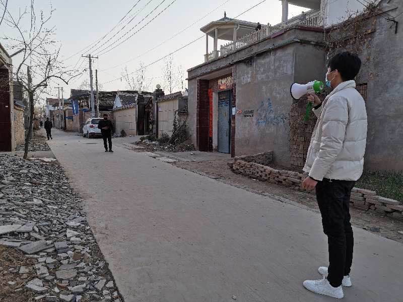 小喇叭,大溫情?!案魑淮迕?,大家新年好,我是咱老冢鎮(zhèn)政府的工作人員,也是咱李鳳行政村的包村干部,最近新型冠狀病毒疫情形勢嚴(yán)峻,請各位村民盡量不要出門......”師東光每天都會帶上夜間充滿電的高音小喇叭,每天上午、下午都要在村里的大街胡同走上一圈,用小喇叭宣傳勸阻大家盡量不要出門,不要在村內(nèi)聚集扎堆聊天、打牌。連續(xù)多日,他用小喇叭傳送著大溫暖。