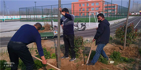 在學(xué)校老師的努力下,在蔣莊村干部群眾支持下,經(jīng)過10多天的辛勤勞動(dòng),蔣莊小學(xué)今年新栽植綠化樹、花木5000多棵(株),本來綠色盎然的校園又添新綠。