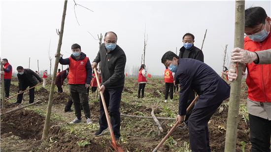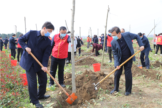 三埋土、兩踩實(shí)、一提根……三川大地春潮涌,植樹造林正當(dāng)時。3月12日上午,鄲城縣四個班子領(lǐng)導(dǎo)崔衛(wèi)國、李建軍、王偉等和廣大志愿者、群眾一起來到皇姑河畔義務(wù)植樹現(xiàn)場,揮鍬鏟土,栽植新綠,為鄲城大地再添一片綠意。