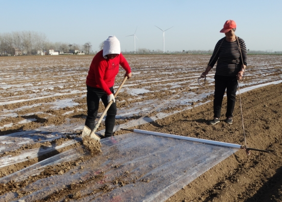 3月24日,沈丘縣周營鎮(zhèn)歐營村生態(tài)中藥材種植基地,當(dāng)?shù)亍八庌r(nóng)”們正為新種植的白術(shù),覆蓋農(nóng)膜增溫保墑。