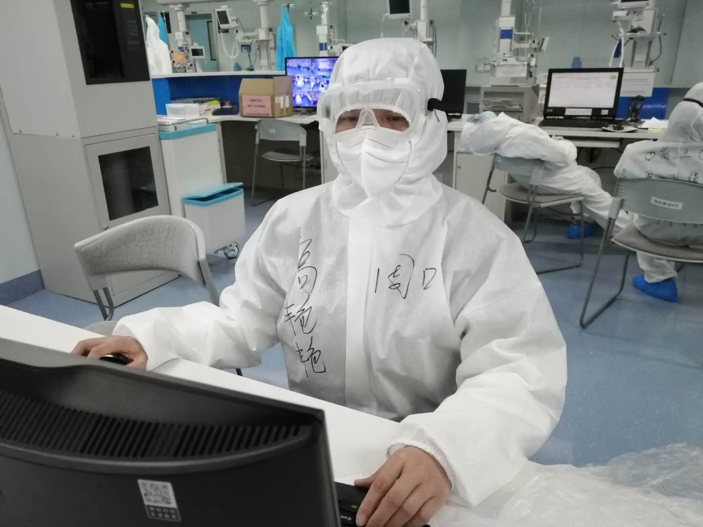 高艷艷說,除了多穿一層防護(hù)服,其他的跟平時的工作差不多。不同的地方,主要體現(xiàn)為兩點(diǎn),一就是從接班到交班,所做的所有工作都多了一份被感染的風(fēng)險。二就是救治存在的難點(diǎn)多、棘手的問題多、突發(fā)事件比較多,比如說:新冠肺炎患者發(fā)展到危重期,特別是病程較長的病人,肺大多爛掉了,多數(shù)病人上有呼吸機(jī),這樣的病人極易出現(xiàn)氣胸。有一次值班期間,一位56歲的男性患者,突發(fā)氧分壓下降、煩躁、血壓下降、出汗,急查胸片證實(shí)氣胸,緊急給予了胸腔穿刺閉式引流,病人癥狀才得以緩解。氣胸雖然在臨床上很常見,但對于新冠肺炎病人卻如同雪上加霜,不緊急處理病人很快就會死掉。每一個搶救的場面如同一場激烈的戰(zhàn)場,而戰(zhàn)斗隨時會打響,但你卻根本無法預(yù)測哪一次戰(zhàn)斗會在哪一個時刻打響,所以值班時每位醫(yī)師都會慣性地緊盯著每個數(shù)值、各個參數(shù)……