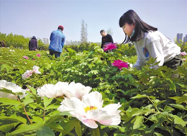 圖二 4月7日,在周口經(jīng)濟(jì)開發(fā)區(qū)淮河路辦事處小牛莊的一個(gè)花圃內(nèi),千余株牡丹相繼吐蕊,吸引不少市民前來賞花。近年來,我市不斷對中心城區(qū)進(jìn)行改建,著力提升城市的園林綠化水平,切實(shí)激發(fā)了城區(qū)周邊農(nóng)民種植花卉、草木的熱情。 記者 孫安平 攝