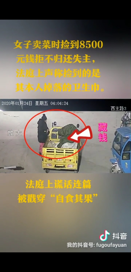 庭審中,面對監(jiān)控錄像顯示楊某彎腰撿拾錢款的畫面,楊某本人百般抵賴、謊話連篇,拒不承認(rèn)撿到錢款。當(dāng)法官詢問楊某如何解釋監(jiān)控畫面中顯示其撿到了白色包裹時,楊某居然說是彎腰撿東西了,但撿的不是錢,撿的是她自己的衛(wèi)生巾。法官再次向楊某告知當(dāng)事人作虛假陳述的后果及應(yīng)當(dāng)承擔(dān)的法律責(zé)任,楊某仍一口咬定撿到的不是錢,撿的是衛(wèi)生巾。法官遂傳喚現(xiàn)場目擊證人出庭作證,兩名證人依法進行了法庭宣誓,明確表示見到了楊某撿起地上一包錢并放入其本人包中的行為。此時,原告又提交了一份錄音證據(jù),法官予以當(dāng)庭播放。錄音清晰顯示,楊某在電話中曾經(jīng)承認(rèn)1月24日早上撿到錢款的行為。