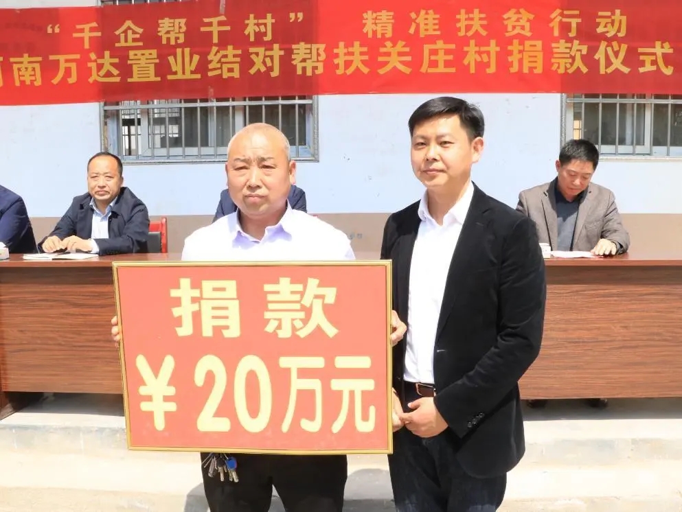 4月13日上午,河南萬(wàn)達(dá)置業(yè)有限公司結(jié)對(duì)幫扶捐款儀式在市城鄉(xiāng)一體化示范區(qū)許灣鄉(xiāng)關(guān)莊行政村隆重舉行。現(xiàn)場(chǎng),該公司為關(guān)莊行政村捐款20萬(wàn)元助力脫貧攻堅(jiān)。
