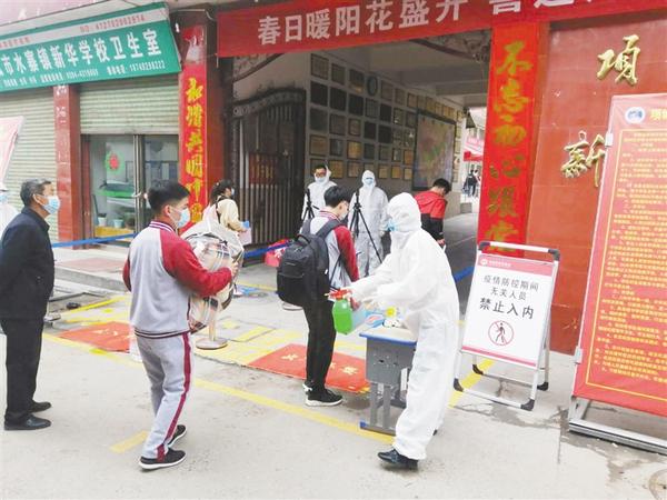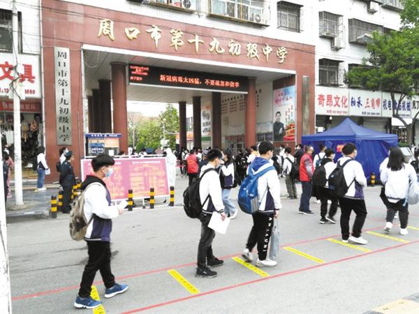 “復(fù)學(xué)后,周口四中實(shí)行小班教學(xué),每個(gè)班不超過35人,每個(gè)人前后左右間隔不低于1米,每個(gè)人進(jìn)入教室時(shí)需要測(cè)量體溫。”周口四中副校長(zhǎng)蘇飛告訴記者,班級(jí)一分為二,教師的工作量成倍增加,但是,學(xué)校在前期做了大量的教學(xué)準(zhǔn)備工作,合理安排初三年級(jí)的課程表,保證每個(gè)班、每節(jié)課都有老師進(jìn)行現(xiàn)場(chǎng)教學(xué)和現(xiàn)場(chǎng)輔導(dǎo)。