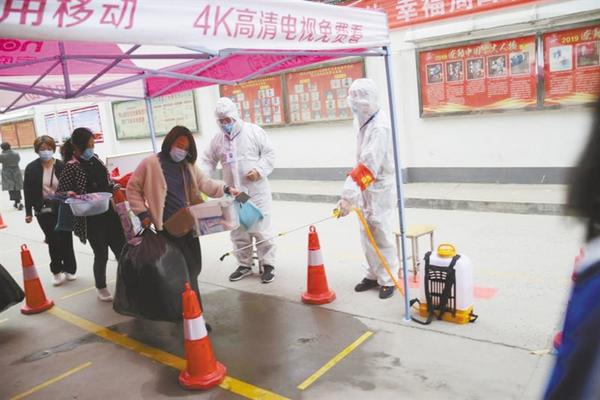 4月20日6時(shí)50分,記者在周口四中門口看到,學(xué)生們?cè)诩议L(zhǎng)的陪伴下陸續(xù)趕來,按照學(xué)校提前下發(fā)的入校流程,在校門口間隔一米距離有序排隊(duì)。然后,他們按規(guī)定依次遞交健康承諾表后,在值班教師的引導(dǎo)下,通過大門兩側(cè)設(shè)置的體溫測(cè)試通道入校,每個(gè)通道處都有工作人員負(fù)責(zé)引導(dǎo)學(xué)生、噴灑消毒液。