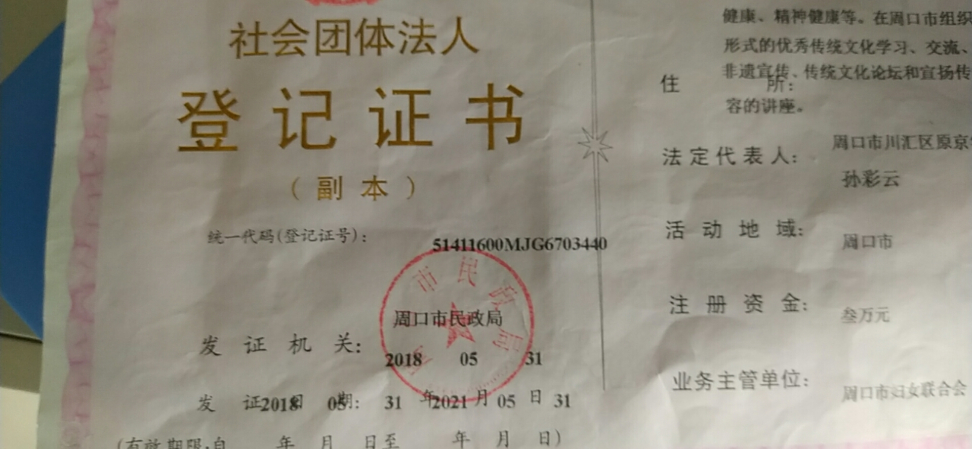 當(dāng)孫彩云把成立志愿者團體的想法在微信群里公布后,得到了群友們的積極響應(yīng)??擅耖g志愿團體只有熱情是不夠的,憑著不達目的誓不罷休的性格,孫彩云一家家尋找掛靠單位,功夫不負有心人,她的毅力感動了周口市婦聯(lián)。在市婦聯(lián)的支持下,2017年4月28日,組織定名“周口市慈孝文化促進會”,同年5月8日,首次護河行動在大鐵牛下舉行,成為守護母親河的起點。2018年5月31日,周口市民政局批示下發(fā)“社會團體法人登記證書”,慈孝文化促進會正式成為國家注冊社會組織。