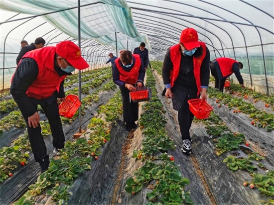 黨員志愿者到幫扶村向過往群眾宣傳普及新型冠狀肺炎防治知識,發(fā)放新型冠狀病毒感染防控指南,并幫助村民采摘、銷售因疫情而滯銷的草莓,深受當?shù)厝罕姺Q贊。
