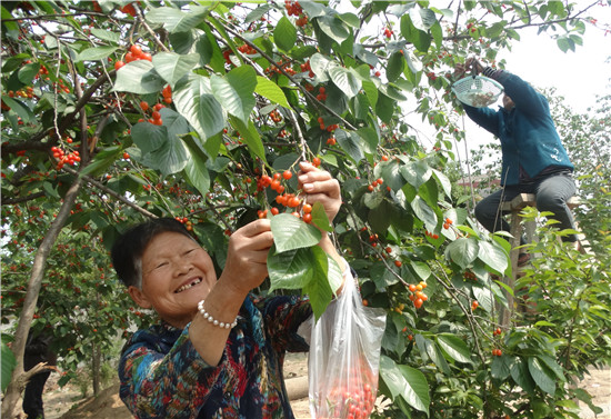 4月30日,沈丘縣周營鎮(zhèn)劉集村一處生態(tài)櫻桃園,晶瑩剔透紅彤彤的甜櫻桃,吸引不少游客前來采摘。近年來,隨著鄉(xiāng)村采摘游的興起,沈丘縣各鄉(xiāng)鎮(zhèn)大力發(fā)展草莓、葡萄、西瓜、蘋果等經(jīng)濟(jì)水果種植,吸引廣大市民自駕到田間地頭親手采摘,成為了村民致富增收的新路子。