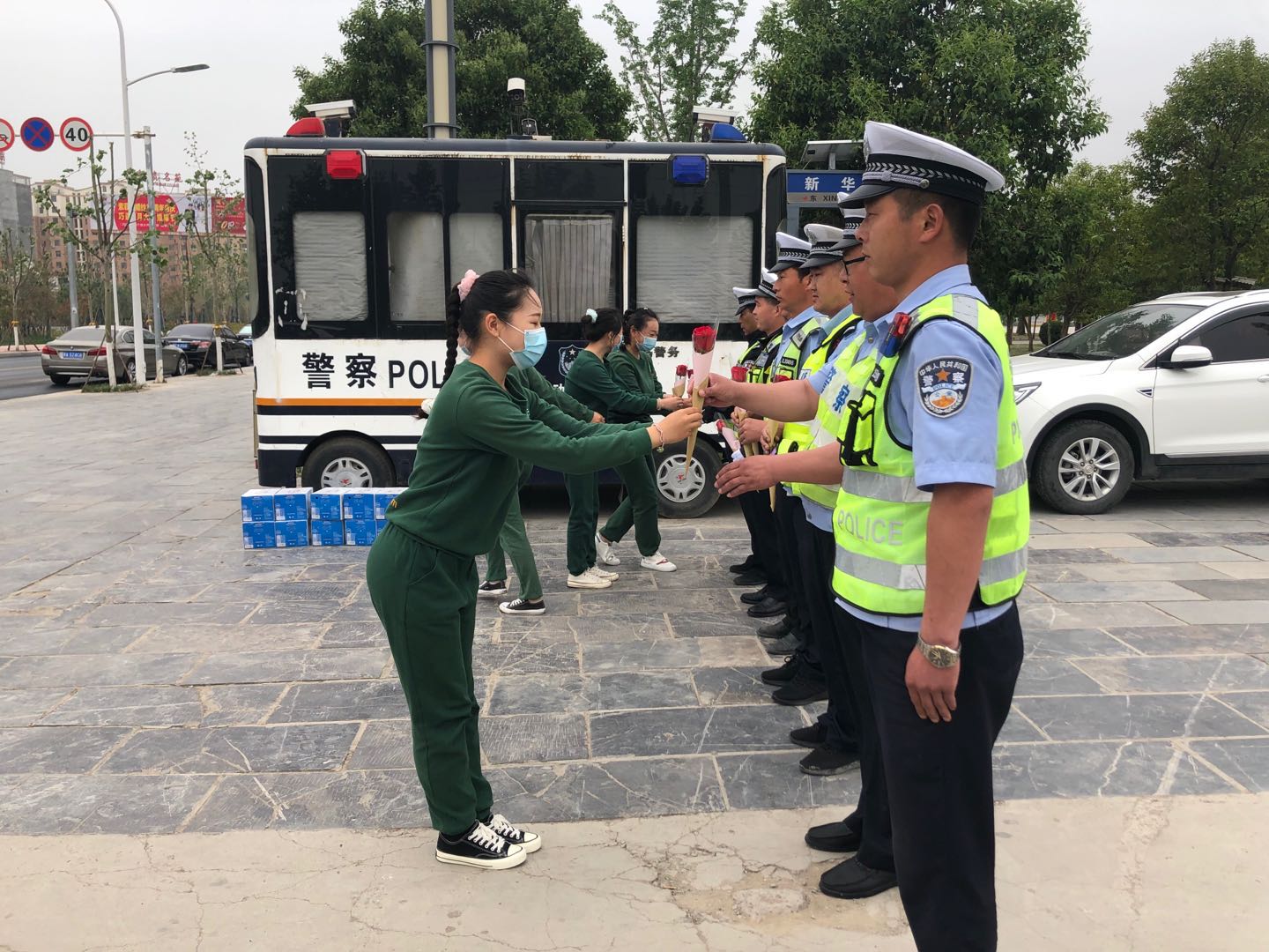 慰問期間,教師們?yōu)楦兄x鄲城交警辛勤的付出,為他們送上錦旗、鮮花和自編的舞蹈,充分表達(dá)對一線執(zhí)勤交警堅守崗位、不辭勞苦、敬業(yè)奉獻(xiàn)精神的敬意。