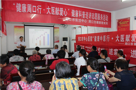 6月11日下午,周口市中心醫(yī)院內(nèi)分泌科主任楊東輝、健康促進(jìn)辦公室主任范桂麗帶領(lǐng)健康巡講志愿服務(wù)隊(duì)來(lái)到慶豐社區(qū),為廣大居民開展“糖尿病如何科學(xué)防治”科普講座。