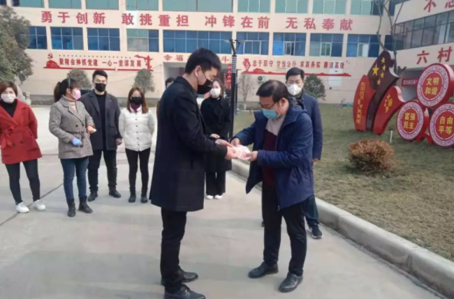 1月31日上午,組織4人向城郊鄉(xiāng)政府捐款30000元,并購(gòu)買了一次性醫(yī)用口罩、84消毒液、酒精等價(jià)值5000多元的抗疫物資。