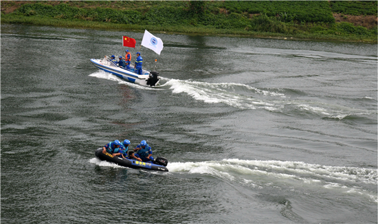 上午9時(shí),隨著田林“開始演練”命令的下達(dá),60人組成的搶險(xiǎn)突擊隊(duì),緊張有序開展了五個(gè)科目的演練。突擊隊(duì)員通過(guò)巡堤查險(xiǎn),觀察堤坡及堤腳附近有無(wú)滲水、管涌、裂縫、滑坡、漏洞等險(xiǎn)情。發(fā)現(xiàn)險(xiǎn)情后,迅速采取導(dǎo)滲、截滲等搶險(xiǎn)措施,確保險(xiǎn)情得到及時(shí)、正確、有效的處理或控制。發(fā)現(xiàn)落水人員,四艘沖鋒舟分工明確,立即前往落水地點(diǎn)進(jìn)行救助。