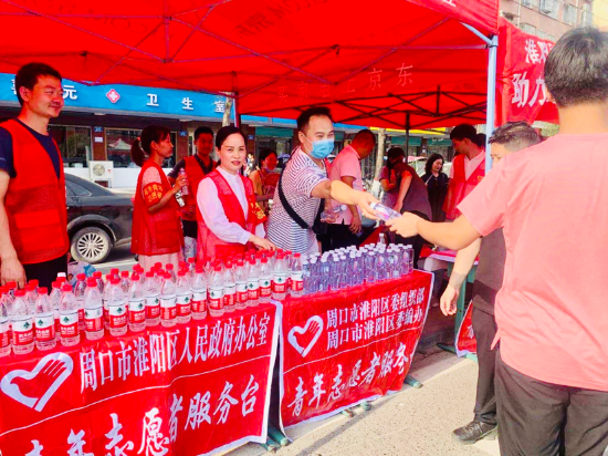 受疫情影響,推遲一個月的高考終于如約而至。7月7日,淮陽區(qū)委編辦志愿者服務(wù)隊與區(qū)委組織部志愿者,聯(lián)合共同開展“愛心助考”活動,在淮陽一高校門口搭起帳篷,設(shè)立愛心站點,為考生和家長免費提供礦泉水,為莘莘學子送去一份夏日的清涼和暖暖的祝福。