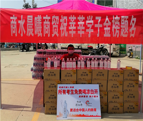 在商水二高考點(diǎn)附近,該公司負(fù)責(zé)人袁紅亮表示,今年的高考遭遇疫情、高溫,非常特殊,作為民營(yíng)企業(yè),我們?cè)笧榭忌鸵黄瑦?ài)心,送一絲清涼,幫助他們渡過(guò)這個(gè)難忘的高考。