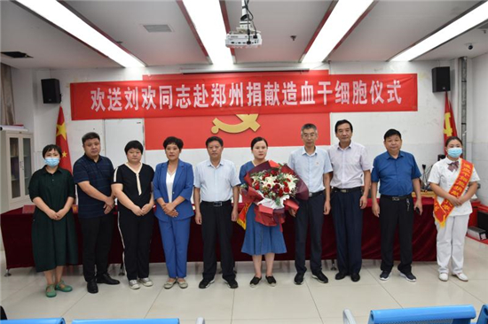 “作為一名醫(yī)務(wù)人員,能為患者帶來生的希望,無論如何我都不會拒絕。希望捐獻(xiàn)后那位患者能早日康復(fù),投入新生活……” 7月22日上午,在西華縣中醫(yī)院會議室舉行的劉歡同志赴鄭州捐獻(xiàn)造血干細(xì)胞歡送儀式上,這位來自該院骨科護(hù)士長的一番話贏得現(xiàn)場陣陣掌聲。市紅十字會常務(wù)副會長毛立營,市紅十字會秘書長高春,西華縣委副書記郭峰,西華縣人民政府副縣長、紅十字會會長張翠霞,西華縣衛(wèi)健委副主任胡濤,西華縣中醫(yī)院院長高彥博等出席歡送儀式。