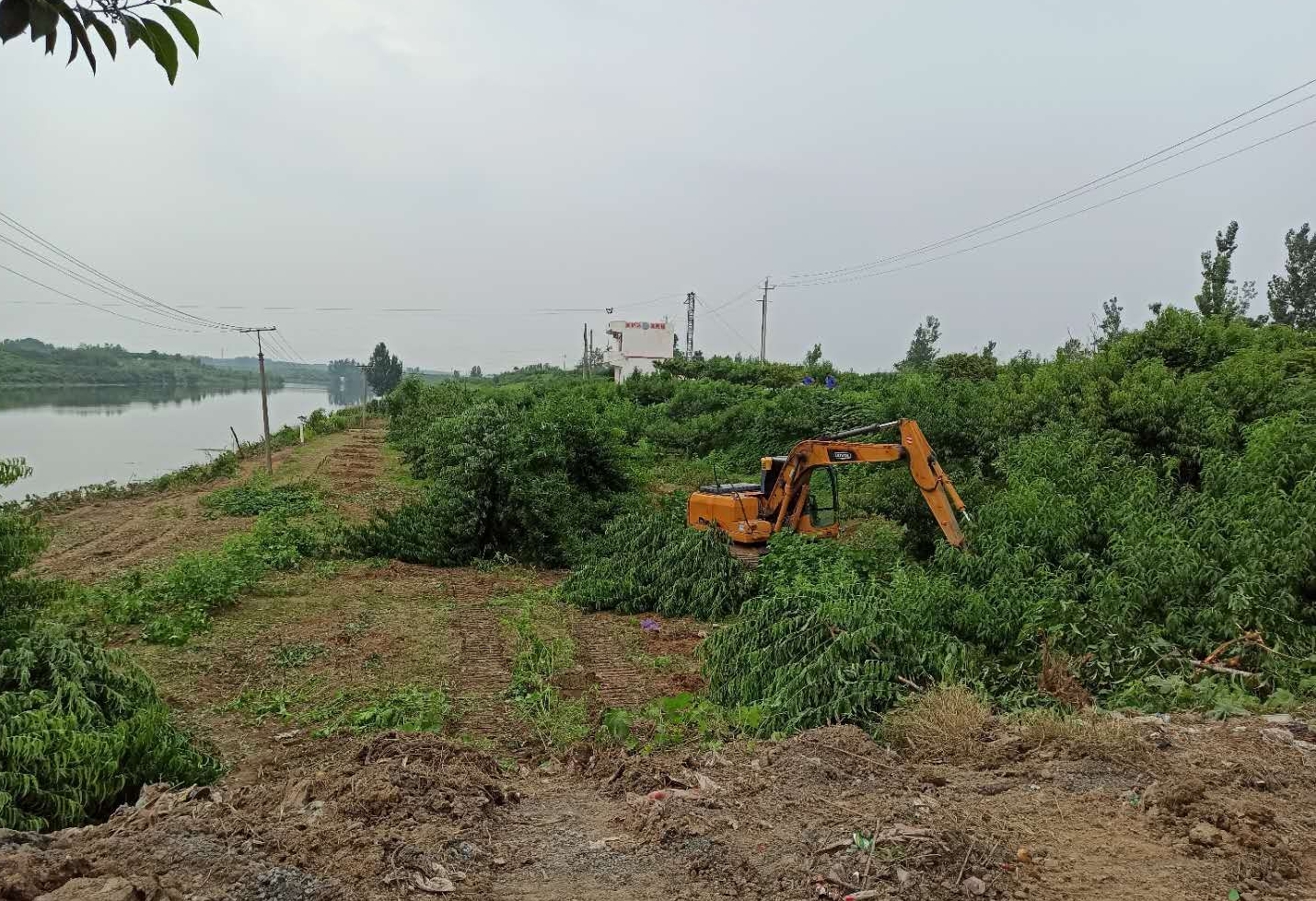同時,該縣以《水法》《防洪法》《河道管理條例》等法律法規(guī),以及中共中央辦公廳、國務(wù)院辦公廳《關(guān)于全面推行河長制的意見》《河南省全面推行河長制工作方案》《河南省總河長令(第2號)》《河南省持續(xù)開展河湖“清四亂”行動方案》等重要文件為依據(jù),對河道管理范圍內(nèi)“四亂”問題進(jìn)行依法清理整治。潁河黃橋閘上下游灘地存在阻水林木,屬“亂占”行為。黃橋鄉(xiāng)政府與河道管理部門實地查看,制定清理方案,劃出清理范圍線,按照潁河防洪要求和管理實際情況,對潁河保證水位線以下高桿作物,樹木全部清理,確保防洪安全。目前,按照清理范圍,潁河黃橋管理段日出動挖掘機(jī)械四臺,已清理桃樹170棵、楊樹40棵、梧桐樹110棵、雜樹7畝,清理河道長1200米。