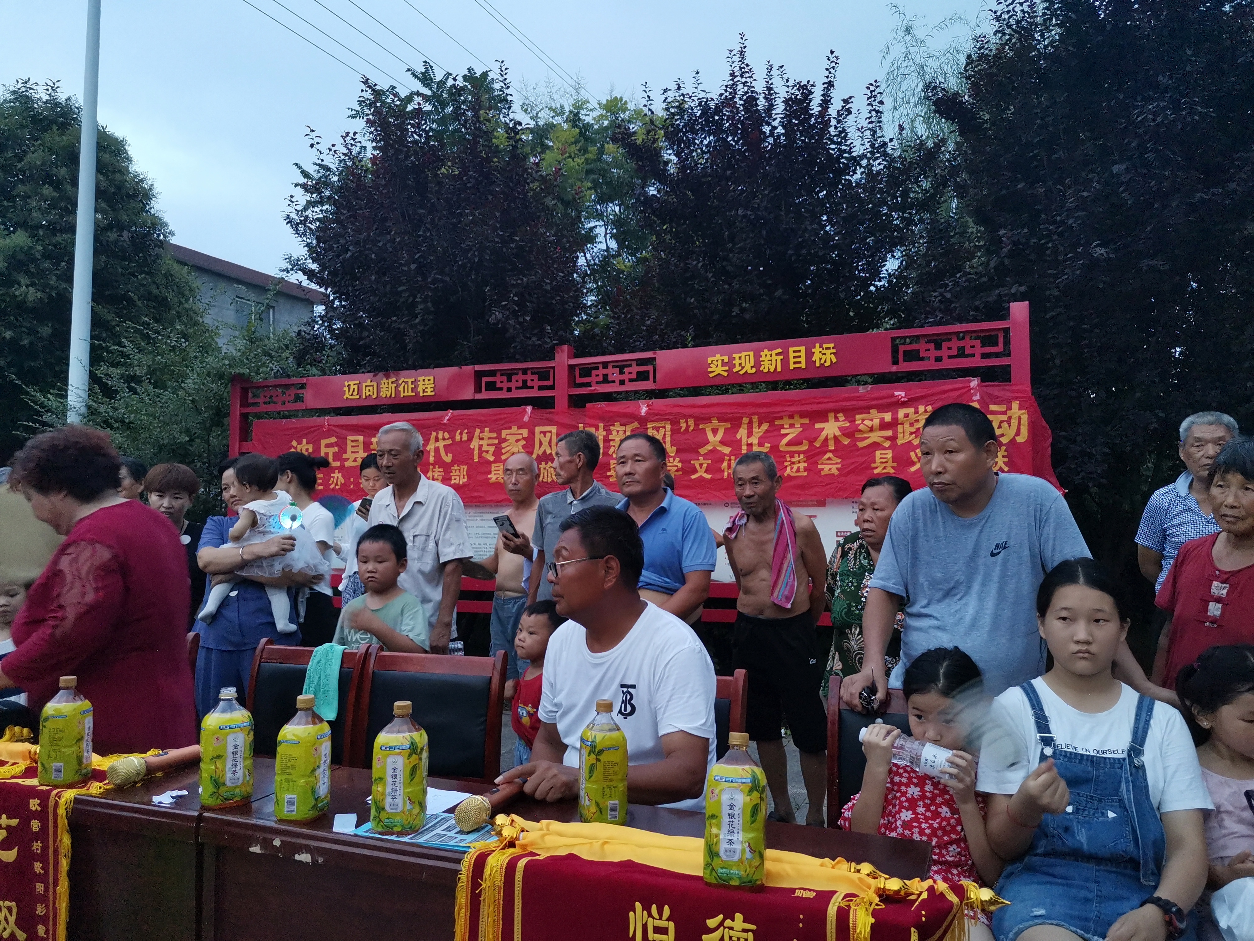 據(jù)悉,此次活動由沈丘縣巾幗宣傳隊承辦,縣國學(xué)文化促進(jìn)會、縣義工聯(lián)協(xié)辦。這一豐富多彩的文藝宣傳形式,以家風(fēng)帶動村風(fēng),以村風(fēng)帶動社風(fēng),起到了很好的宣傳效果,在很大程度上繁榮了鄉(xiāng)村文化夜生活,受到當(dāng)?shù)厝罕姷臒崆椤包c贊”。