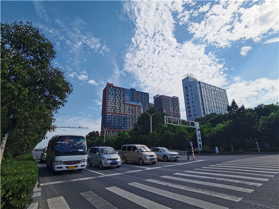 8月3日,周口市 中心城區(qū)晴空萬里,藍(lán)天白云,市民駐足在每個(gè)地方都能看到美景。