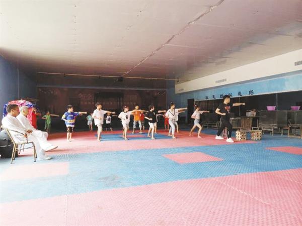 8月3日下午3時,在太康縣張集鎮(zhèn)蔣堂行政村武館,孩子們在教練的帶領下,正在練習民間武術大洪拳的基本功(如圖)。這些孩子大的十三四歲,小的才五六歲,“嗨哈”之聲不絕于耳。