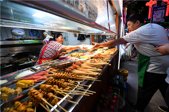 8月25日晚,華燈初上,開發(fā)區(qū)南廣場夜市熱鬧非凡,前來消費的市民絡繹不絕。在這里,各種燒烤和小吃應有盡有。在酷熱的夏日,人們在這里盡情享受溫馨生活。