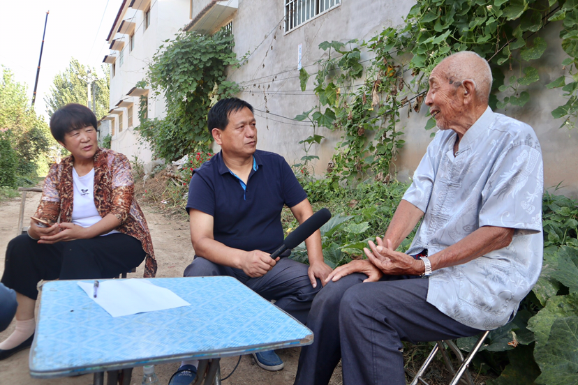 在中國人民抗日戰(zhàn)爭勝利75周年之際,扶溝縣新四軍研究會、吉鴻昌精神研究會名譽會長張敦、何俊山、尹發(fā)展和秘書長李偉,扶溝縣唯伊傳媒、扶溝縣天和文化傳媒負(fù)責(zé)人與縣融媒體記者一起,于9月4日驅(qū)車趕往縣城南15公里的革命老區(qū),有豫東小延安之稱的扶溝縣練寺鎮(zhèn)下坡行政村何樓村,走訪抗日老戰(zhàn)士、新四軍老戰(zhàn)士何天順。