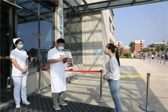 “您好,您哪兒不舒服?。拷谌ミ^疫區(qū)嗎?”鄲城縣第二醫(yī)療健康服務(wù)集團(tuán)鄲城縣中醫(yī)院門診樓前預(yù)檢分診入口處,分診護(hù)士正仔細(xì)詢問一名就診患者?!拔矣悬c(diǎn)發(fā)燒、咳嗽,10天前從某省回來?!狈衷\護(hù)士經(jīng)詳細(xì)詢問其流行病學(xué)史,在做好登記后,護(hù)士為患者更換醫(yī)用外科口罩,并引導(dǎo)患者到發(fā)熱門診......這是9月8日下午,在鄲城縣第二醫(yī)療健康服務(wù)集團(tuán)鄲城縣中醫(yī)院開展的秋冬季新冠肺炎疫情防控應(yīng)急演練的一幕。