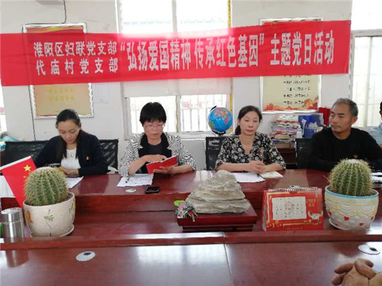 為進一步教育引導黨員、干部弘揚愛國精神,傳承紅色基因,夯實基層黨支部戰(zhàn)斗堡壘和黨員先鋒模范作用。9月22日(農歷初六),淮陽區(qū)婦聯黨支部在幫扶村大連鄉(xiāng)代廟行政村,與該村黨支部共同開展“弘揚愛國精神 傳承紅色基因”9月份主題黨日活動。區(qū)婦聯全體黨員、代廟村黨支部在家黨員參加了活動。