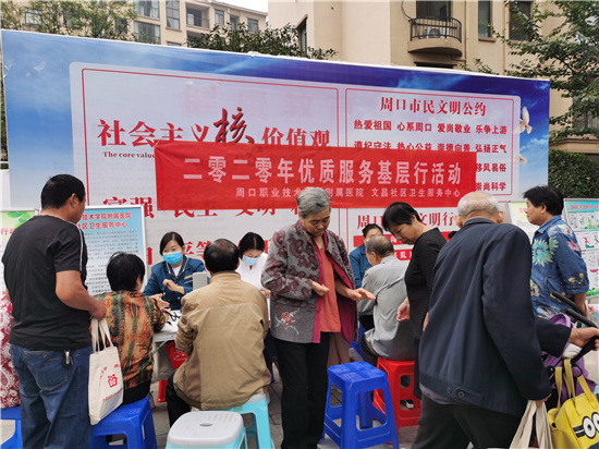 9月25日早上,周口市城鄉(xiāng)一體化示范區(qū)文昌社區(qū)衛(wèi)生服務(wù)中心的醫(yī)務(wù)人員在建業(yè)小區(qū)為居民測量血壓,并建立健康檔案。為滿足社區(qū)廣大群眾基本醫(yī)療衛(wèi)生服務(wù)需求,更貼心為轄區(qū)居民的服務(wù),文昌社區(qū)衛(wèi)生服務(wù)中心開展2020年優(yōu)質(zhì)服務(wù)基層行活動,文昌社區(qū)衛(wèi)生服務(wù)中心組織醫(yī)務(wù)人員不定時(shí)走進(jìn)各個小區(qū),為居民進(jìn)行基礎(chǔ)項(xiàng)目體檢,并建立居民健康檔案。