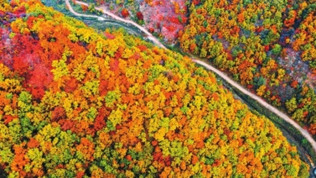 沿木棧道拾級而上,一路上假山飛瀑、小橋流水,十幾棟巴渝風(fēng)格的小木屋掩映在青山綠樹之間,飄來陣陣香氣——10月13日,滿載游客的大巴駛?cè)膪Q壁市淇濱區(qū)鉅橋鎮(zhèn)崗坡村,大家剛一下車就被眼前的“火鍋山”所吸引。