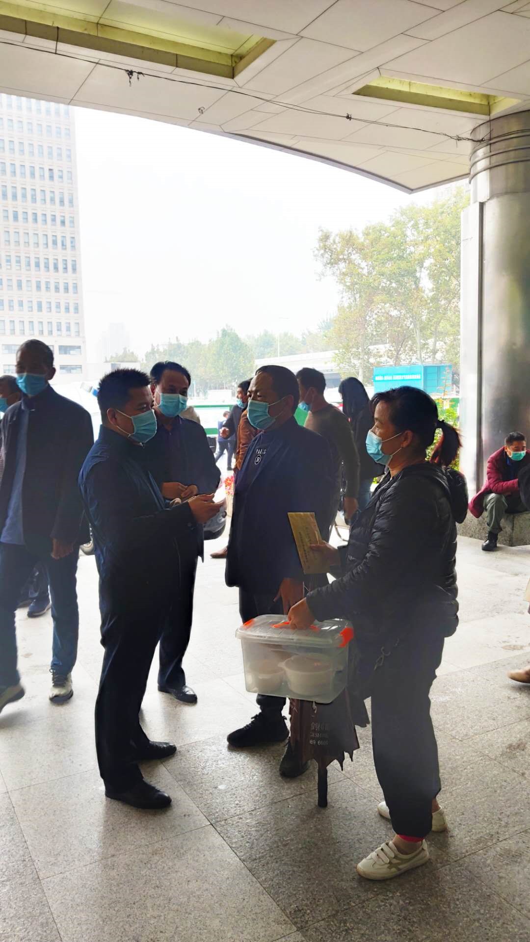 (周口市駐鄭辦職工在鄭大一附院,把捐款交到劉亞隆父親手中)