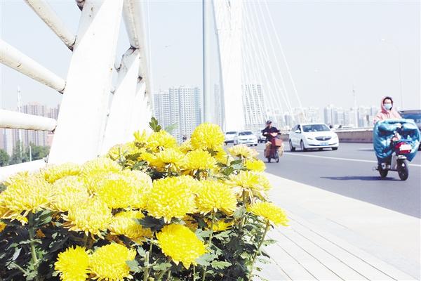 10月21日,市民從大慶路橋上經過。記者在中心城區(qū)街頭看到,各式各樣的花卉、綠植擺放成各類造型,提升了城市顏值,為“創(chuàng)文”中的周口增色不少。見習記者 孫靖 攝