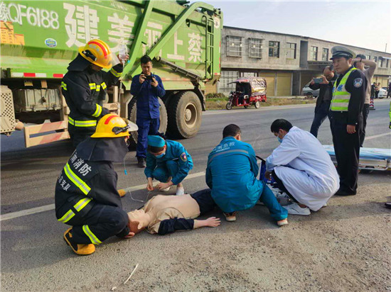 商水上蔡交警聯(lián)合開展道路交通事故應(yīng)急救援演練