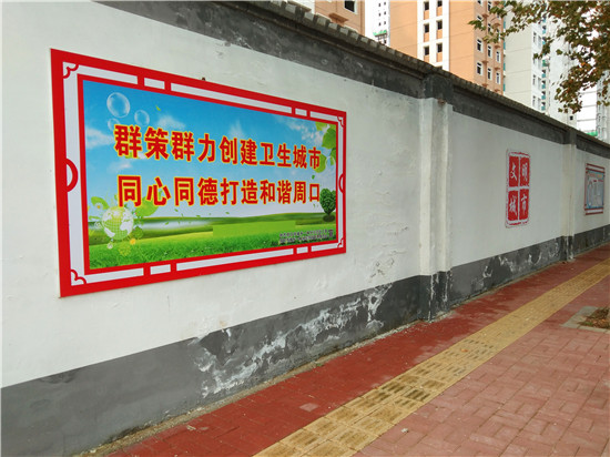 10月28日,記者在周口中心城區(qū)慶豐路邊看到,潔白的外墻上噴涂上了各類公益廣告,倡導市民樹立文明新風,還扮靚了街道,讓人眼前一亮。①15 周口日報·周道客戶端記者張洪濤 攝