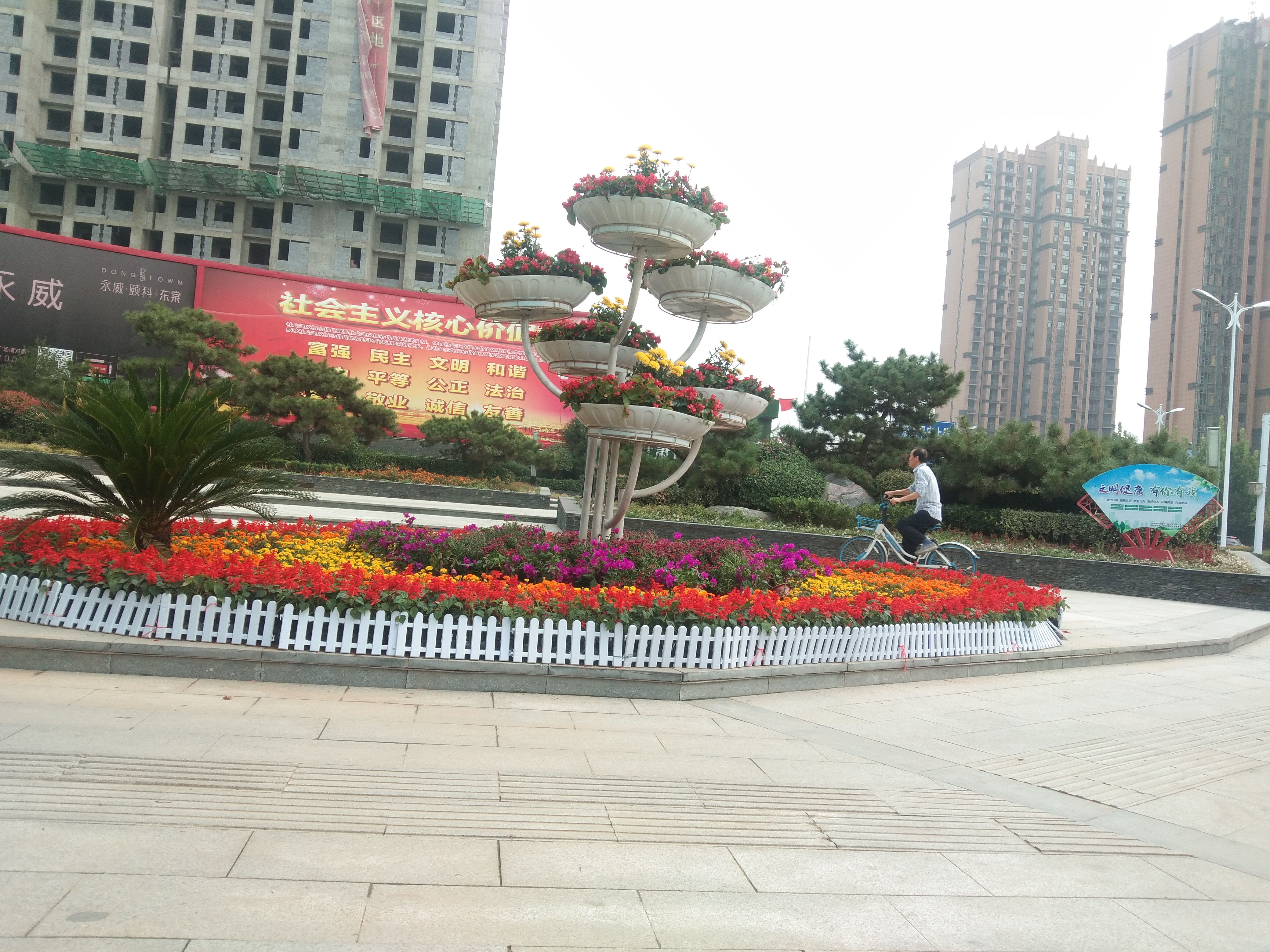 10月29日,記者在周口中心城區(qū)文昌大道與大慶路交叉口看到,一個(gè)大型花架出現(xiàn)在街頭游園內(nèi),上面各種美麗的花兒裝點(diǎn)著不大的游園,給市民休閑娛樂營造了良好的環(huán)境。①9