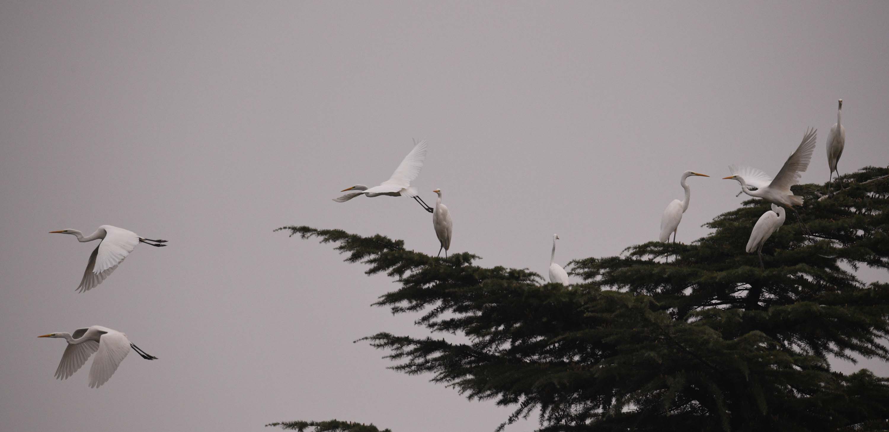 近日,市區(qū)漢陽(yáng)路沙潁河大閘的中心島林間,飛來(lái)近百只白鷺。這里幽靜舒適的環(huán)境和河里豐富的魚(yú)蝦,滿足它們棲息和生活。它們面對(duì)行人,不驚不詫,時(shí)而盤(pán)旋嬉戲,時(shí)而捉魚(yú)果腹。人鳥(niǎo)和諧相處,構(gòu)成美麗的生態(tài)風(fēng)情。②9