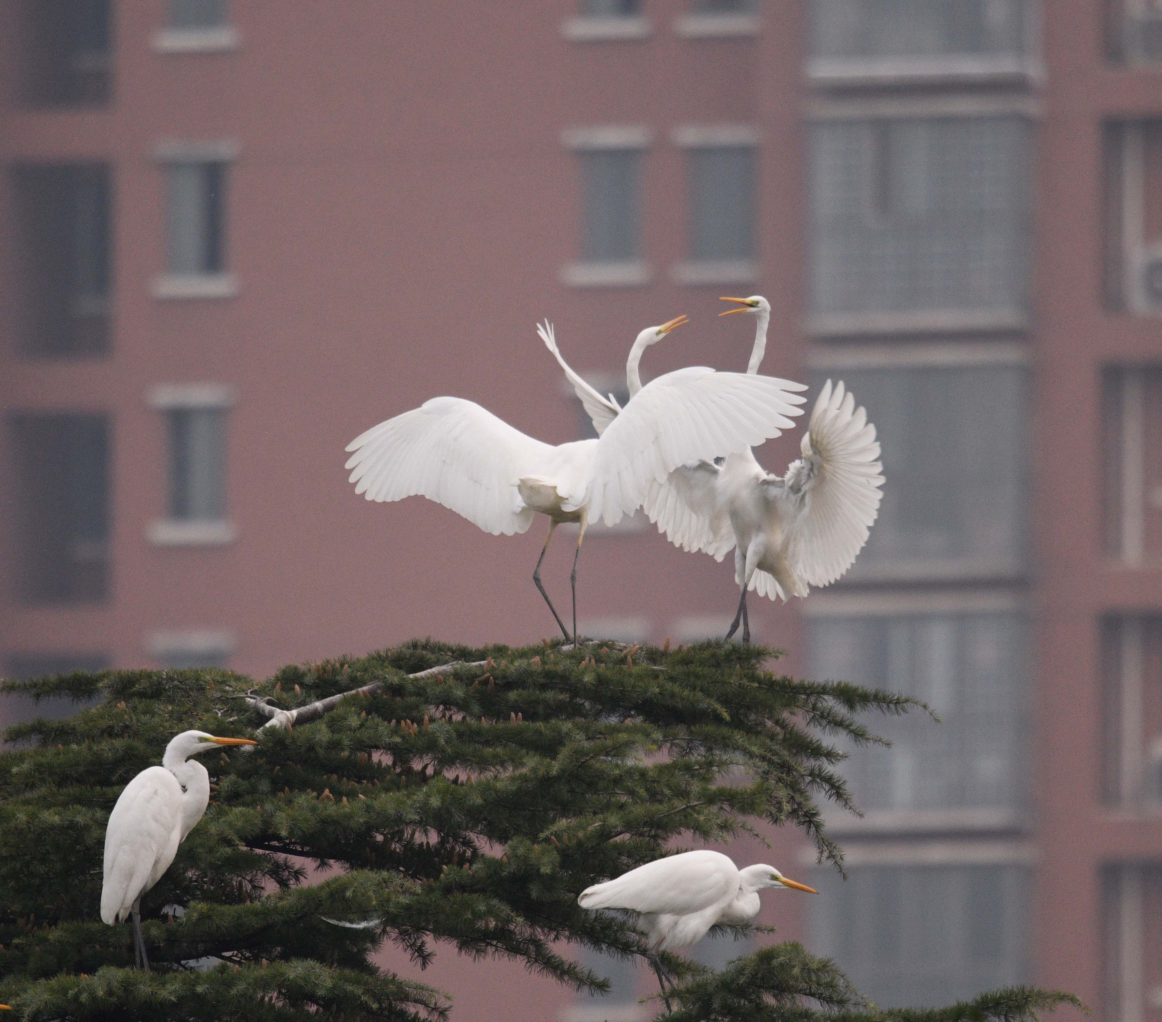 優(yōu)美城市生態(tài)環(huán)境吸引白鷺落戶漢陽(yáng)路大閘林間