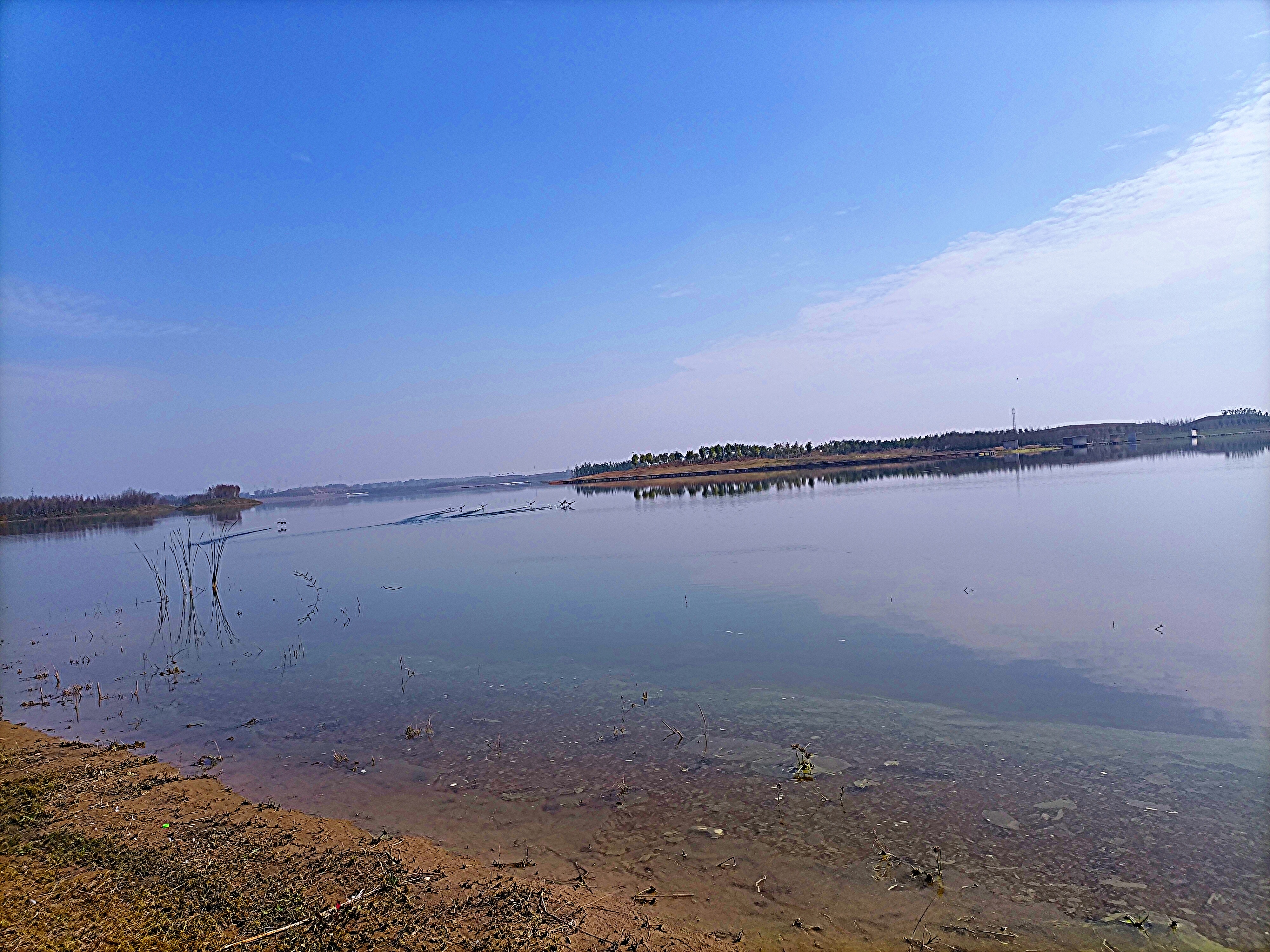晚秋時節(jié),周口伏羲湖濕地公園風景宜人,舉目望去,波光瀲滟的伏羲湖水面上倒映著藍天、白云、飛鳥,“秋水共長天一色”的絕美畫卷讓人心醉。