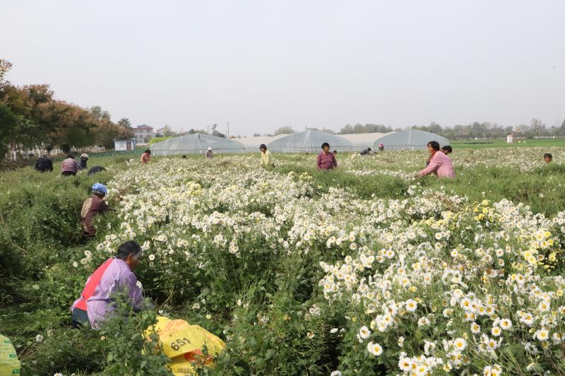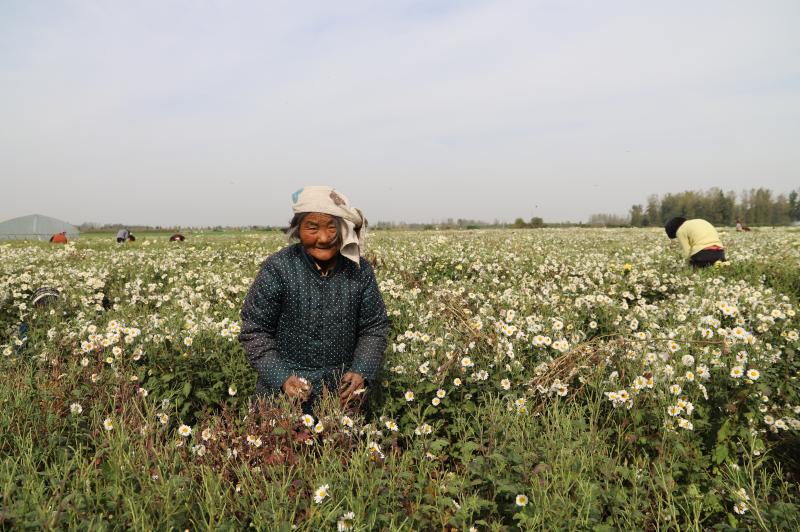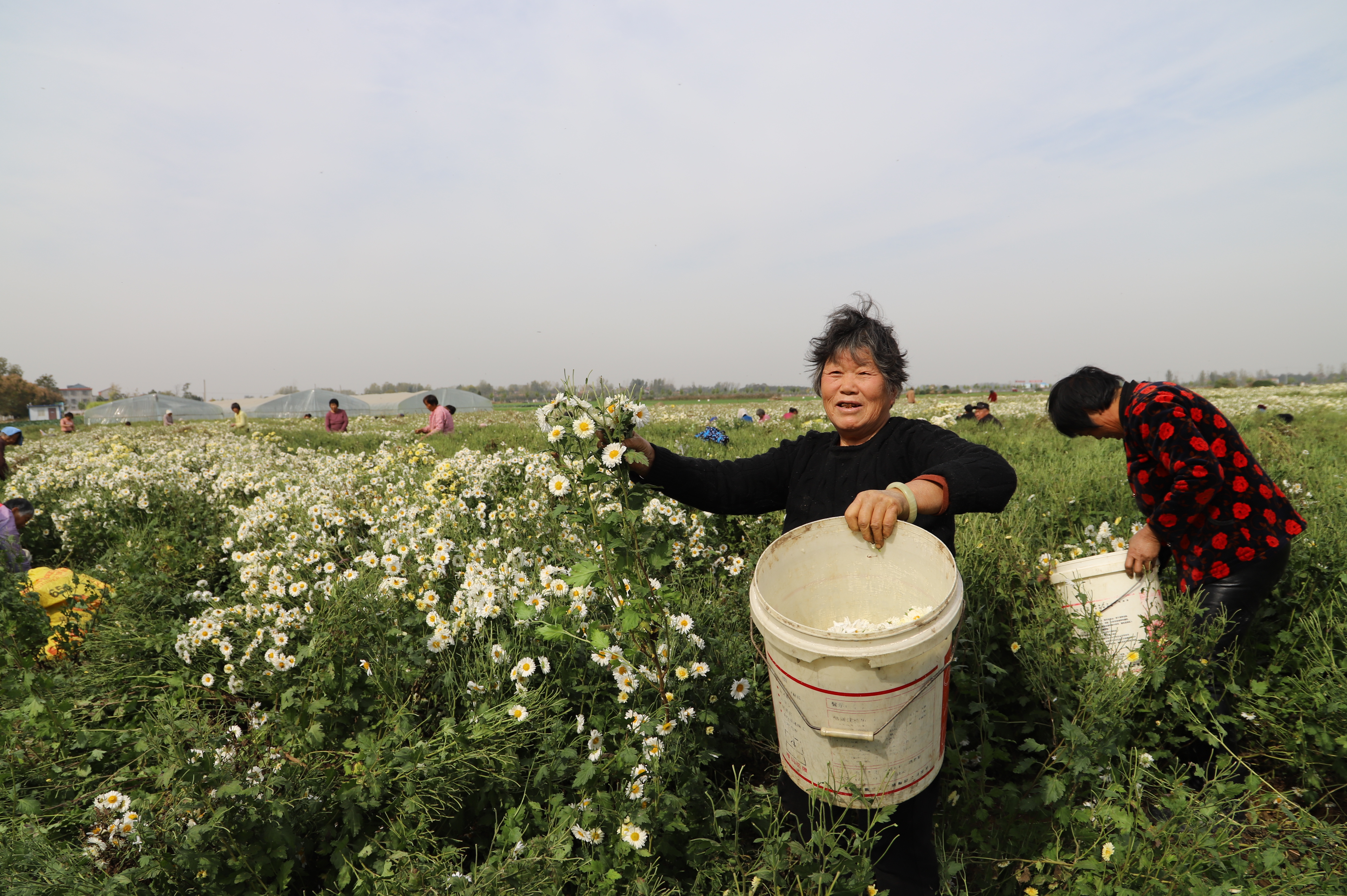 原來,菊花田的老板叫晉振中,于2018年從全縣脫貧攻堅種植信息渠道得知種菊花能致富,銷售的末端是安徽亳州的藥材市場和一些花茶商家。特別是種植方式和平原種植紅薯一樣,把田地打成壟,栽苗、施肥、澆水、除草,9月份采摘一次、11月份采摘一次,剩下的菊花秸稈粉碎到田間作為肥料,還能種植晚小麥,十分方便。于是,他通過鎮(zhèn)村兩級黨員干部協(xié)助流轉(zhuǎn)了100畝土地,2019年就掙了20多萬元。由于晉菜園村是貧困村,在他的菊花田務(wù)工的勞動力大多是貧困戶,能帶動近百戶貧困戶脫貧致富,晉振中欣慰地覺得自己為脫貧攻堅做了一份大貢獻(xiàn)。