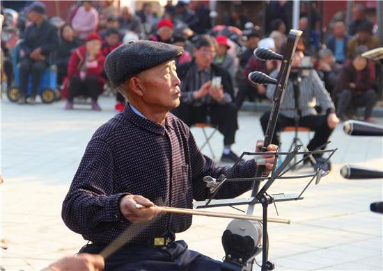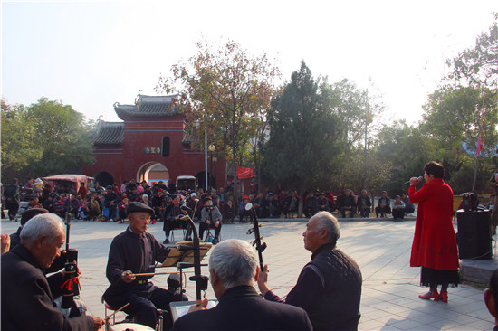 11月10日,戲迷朋友在商水縣郝崗鎮(zhèn)北社村千年古塔旁表演戲曲節(jié)目。初冬時(shí)節(jié),暖陽(yáng)普照,壽圣寺古塔附近的戲迷和樂(lè)器愛(ài)好者自發(fā)來(lái)到千年古塔旁表演戲曲節(jié)目,為當(dāng)?shù)厝罕娝蜕暇实奈幕蟛?,進(jìn)一步活躍了農(nóng)村文化生活。①15周口日?qǐng)?bào)·周道客戶端記者付永奇 通訊員 呂耀光 攝