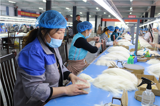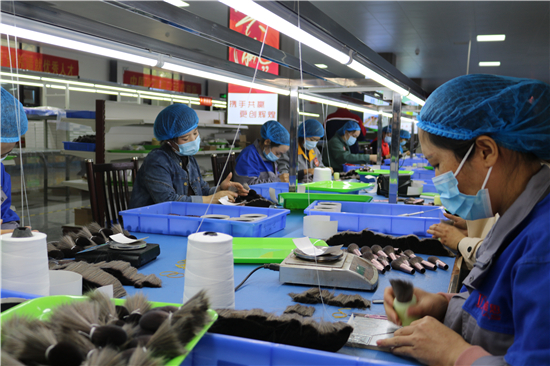 “從簡(jiǎn)單的梳羊毛到如今做高檔化妝刷,從產(chǎn)業(yè)鏈的末端做到頂端,從養(yǎng)家糊口到賺外匯,經(jīng)過(guò)多年的滾動(dòng)發(fā)展,鹿邑縣硬是把尾毛化妝刷這種‘小手藝’做成了助推縣域經(jīng)濟(jì)高質(zhì)量發(fā)展的‘大產(chǎn)業(yè)’。目前,全縣大大小小的化妝刷企業(yè)達(dá)1000多家,尾毛出口總量占全國(guó)化妝刷原毛出口的80%,年產(chǎn)羊毛3000多噸、尼龍毛9000多噸,生產(chǎn)各類化妝刷1.5億套,產(chǎn)品遠(yuǎn)銷20多個(gè)國(guó)家和地區(qū)。另外,作為尾毛的衍生產(chǎn)業(yè),羊毛衫加工產(chǎn)業(yè)近幾年的異軍突起,更是激活了全縣創(chuàng)業(yè)就業(yè)的一池春水。統(tǒng)計(jì)數(shù)字顯示,近幾年,鹿邑縣持續(xù)圍繞尾毛化妝刷特色產(chǎn)業(yè),強(qiáng)鏈延鏈補(bǔ)鏈,開(kāi)展精準(zhǔn)招商,化妝刷及配套企業(yè)已發(fā)展到135家,實(shí)現(xiàn)產(chǎn)值50多億元,出口創(chuàng)匯21億;羊毛衫紡織企業(yè)發(fā)展到54家,有電腦織機(jī)6500臺(tái),年產(chǎn)各類針織服裝6000萬(wàn)件,使鹿邑成為河南省最大的化妝刷生產(chǎn)基地、羊毛衫加工基地,帶動(dòng)全縣7.5萬(wàn)人創(chuàng)業(yè)就業(yè)。