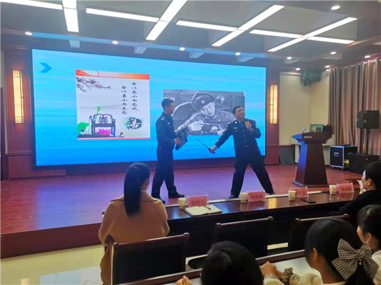 課堂上, 公安民警用鮮活的案例剖析青少年違法犯罪的心理軌跡,讓同學(xué)們做遵紀(jì)守法好學(xué)生。民警們解讀了社會(huì)主義核心價(jià)值觀基本內(nèi)涵和具體要求,教育同學(xué)們要愛黨愛國愛校園愛學(xué)習(xí),做人誠信,做事友善。民警們還教會(huì)學(xué)生們?nèi)绾巫R(shí)別毒品,認(rèn)識(shí)毒品危害,做到拒絕、遠(yuǎn)離毒品,爭當(dāng)禁毒小小宣傳員。對如何防范被刀棍傷害,民警們演示了書包板凳防護(hù)法。③5