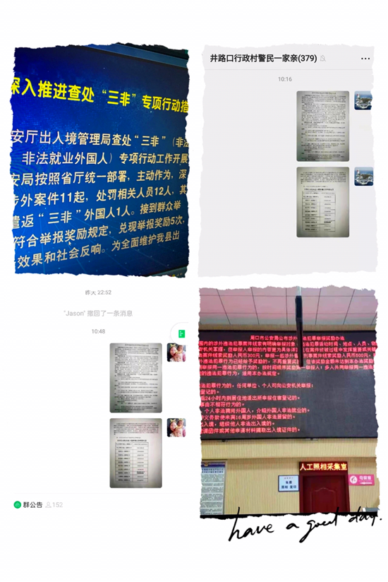 組織集中宣傳。為全面提升宣傳效果,鄲城縣公安局出入境管理科民警面對(duì)面向400余名群眾講解市公安局涉外違法犯罪舉報(bào)獎(jiǎng)勵(lì)辦法、國(guó)家移民管理局12項(xiàng)移民出入境便利政策措施和疫情防控常態(tài)化非常態(tài)管理等。同時(shí),利用社區(qū)警民微信群、平安建設(shè)微信群、警務(wù)微信群、一村一警工作微信群等不間斷宣傳,并要求每日轉(zhuǎn)發(fā)內(nèi)容截圖上報(bào),進(jìn)一步提高了人民群眾的知曉率和參與度。