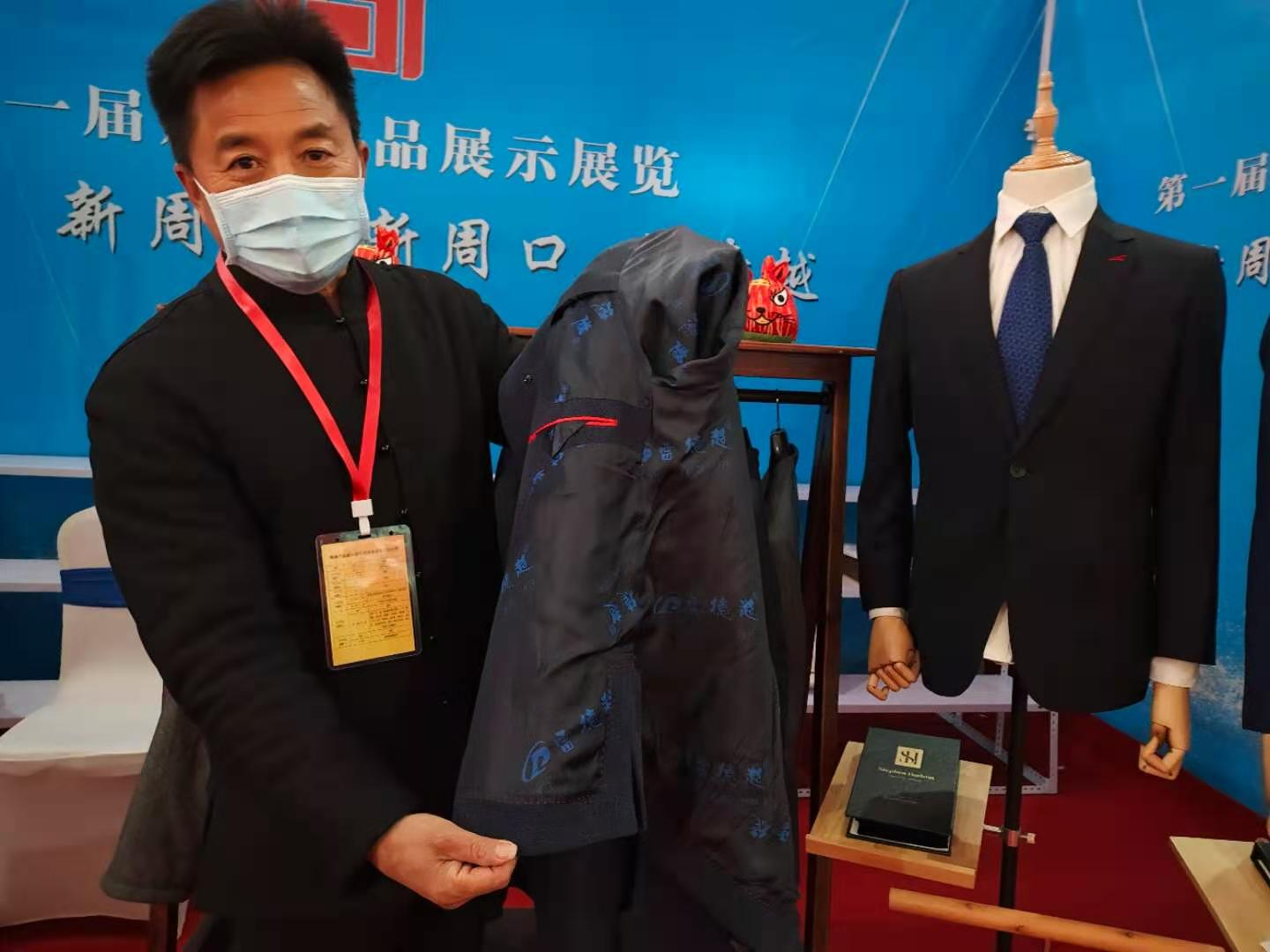 量身定制,做工考究,一件件手工制作的西服讓不少人重新認(rèn)識服裝的制作過程。在周商大會開幕當(dāng)天,記者見到了淮陽縣第十三屆政協(xié)常委、非物質(zhì)文化遺產(chǎn)淮陽布老虎傳承人、淮陽縣工藝美術(shù)協(xié)會副主席雷智超。本次大會,他不僅帶來了呆萌的布老虎,還帶來了以自己名字命名的手工西服。制作精良的手工西服像極了一件件藝術(shù)品,吸引了不少人咨詢。