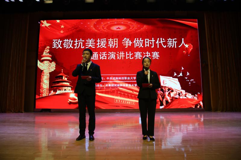 為銘記歷史、緬懷先烈、增強愛國主義精神,培養(yǎng)新時代大學生的責任與擔當意識。12月1日晚,河南科技職業(yè)大學舉辦“致敬抗美援朝,爭做時代新人”普通話演講比賽。