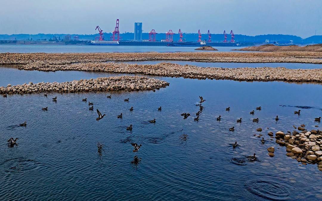 在枝江,取締非法船塢、碼頭,關(guān)停砂石廠,進(jìn)行生態(tài)復(fù)綠,昔日荒蕪的岸坡,正在蝶變成一條既可見碧水浩蕩東流,又可見飛鳥嬉戲灘涂的濱江生態(tài)廊道;