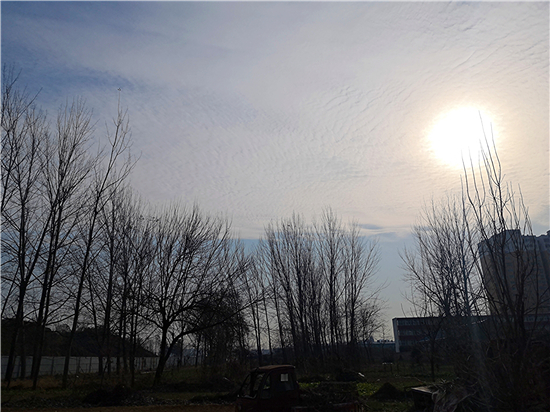 近日,我市天氣晴朗,漫步在街邊小道上,抬頭望去,處處皆是風(fēng)景,比如蔚藍(lán)的天空、挺立的高樓、蒼茫的禿枝……這一切都勾勒成了一幅唯美的冬日畫(huà)卷。